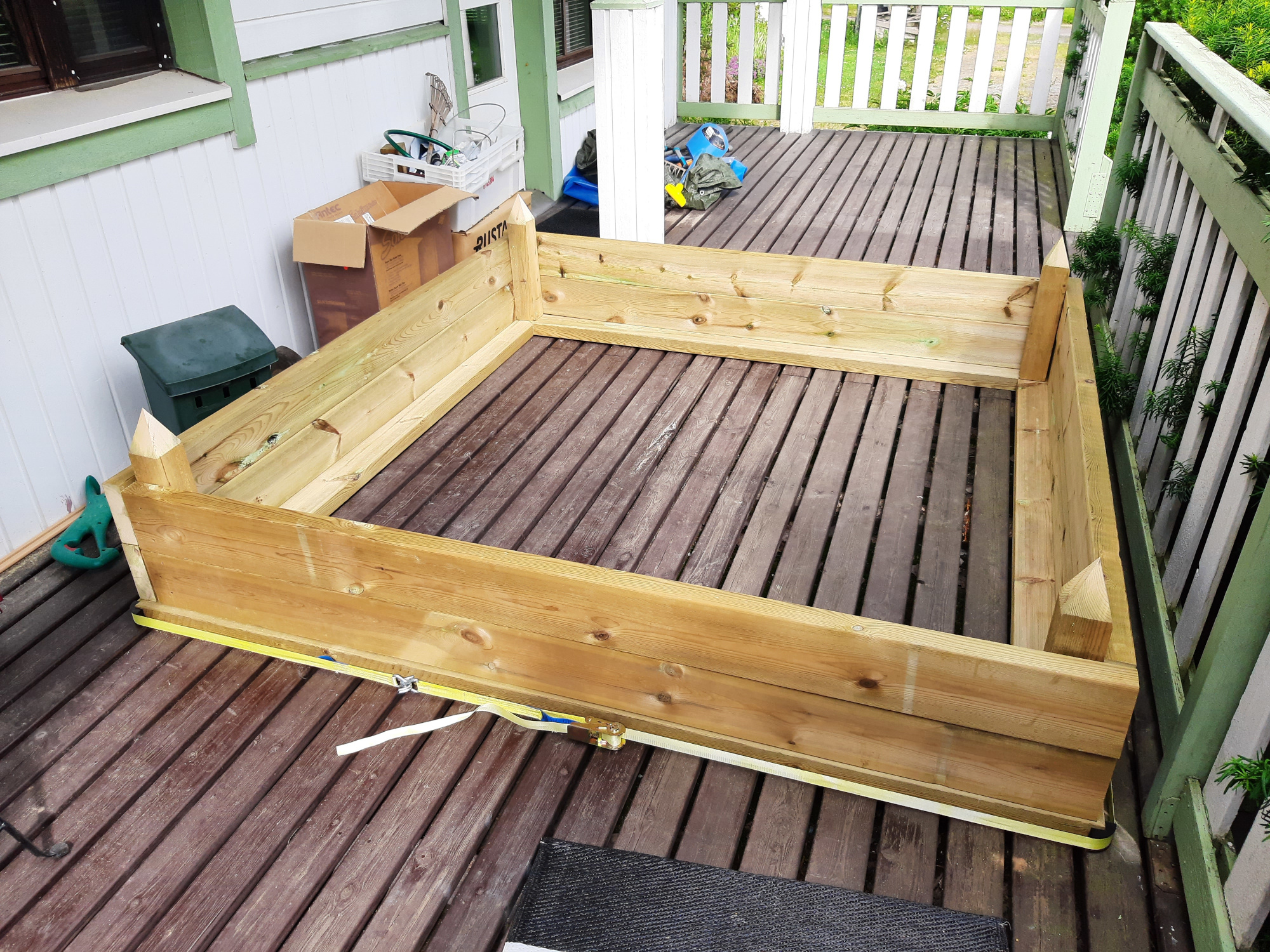 The corners of my last sandbox failed a little bit, so I tried to make sure the corners are in 90° angle, and that they fit to each others well.