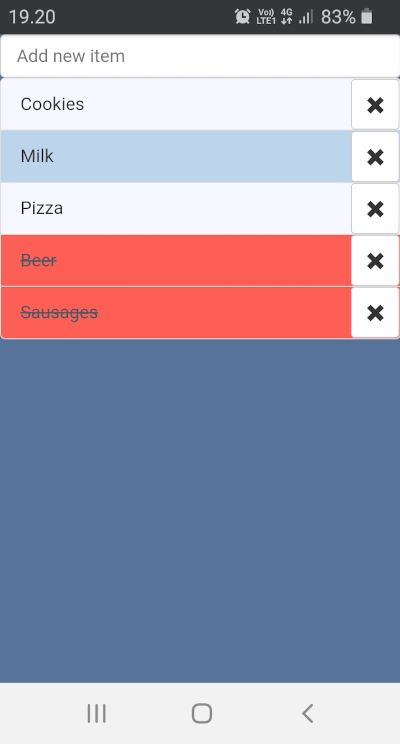 Items in the list can be removed and mark as "done". The changes are updated to other users of the list.